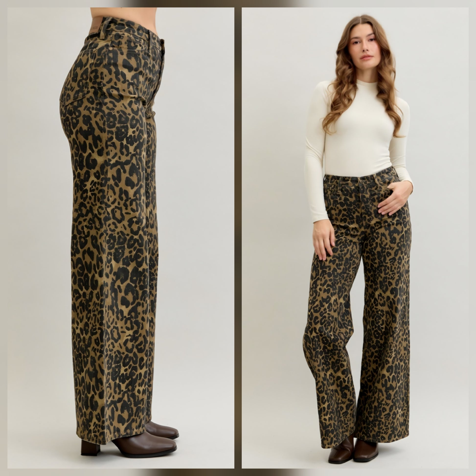 Judy Blue's much anticipated Leopard Wide Leg Jean! 10.75 Rise and 33 Inseam.